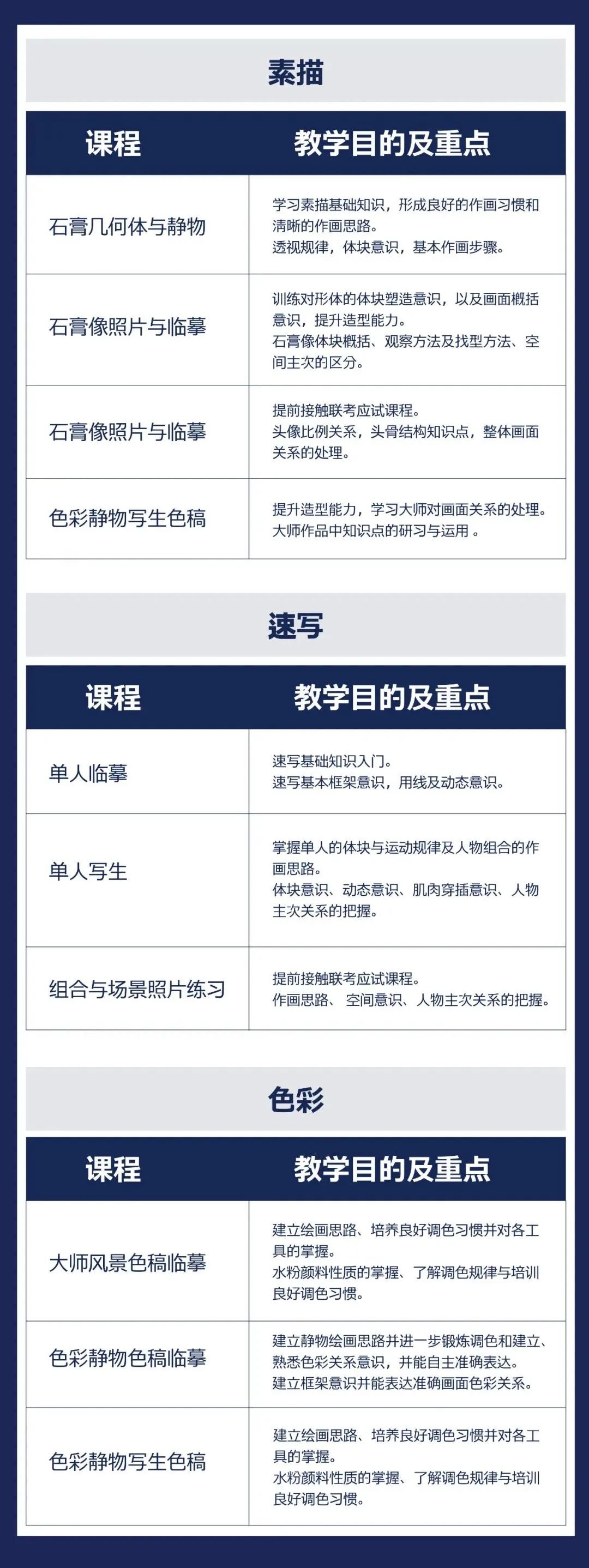 物写生、真人写生以及色彩临摹等。