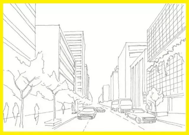 现在我们想以站在街道上的行人的视线高度画这座大楼。